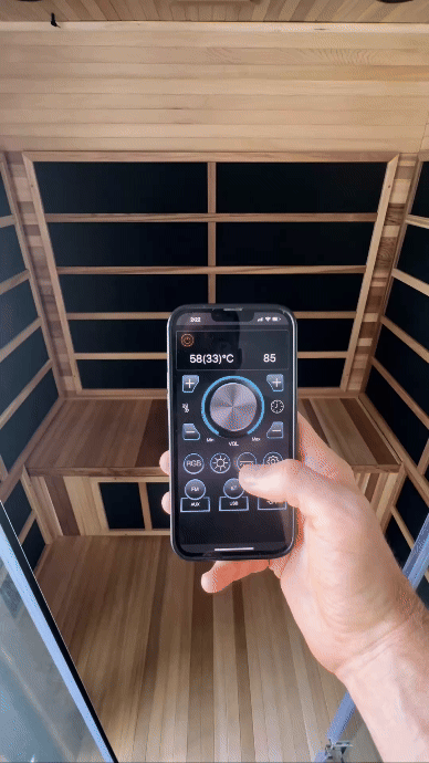 Adjust every sauna setting right from your phone. Temperature, time, music, mood lighting, pre-heat, even make sure you switched your sauna off. whatever you need.